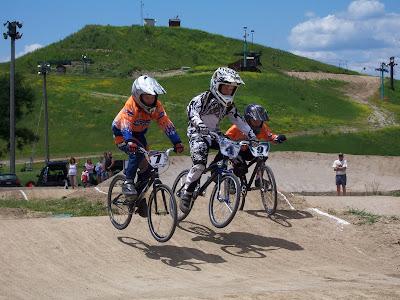 Chris Wipijewski (48), Collin Kohls (3) and Nate Booth (57) barreling down into the first corner. With Kohls a little dinged up from a street riding incident that happened earlier in the day -- Wip was pretty much tail-lights and took down a nice win in 15 Intermediate.